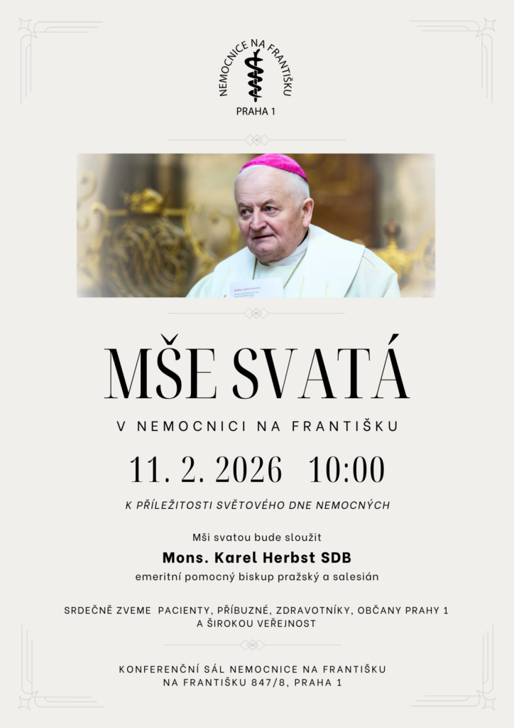 Nemocnice Na Františku zve pacienty, jejich blízké, zaměstnance i širokou veřejnost na mši svatou, která se koná při příležitosti Světového dne nemocných ve středu 11. února 2026 od 10 hodin v konferenčním sále nemocnice.