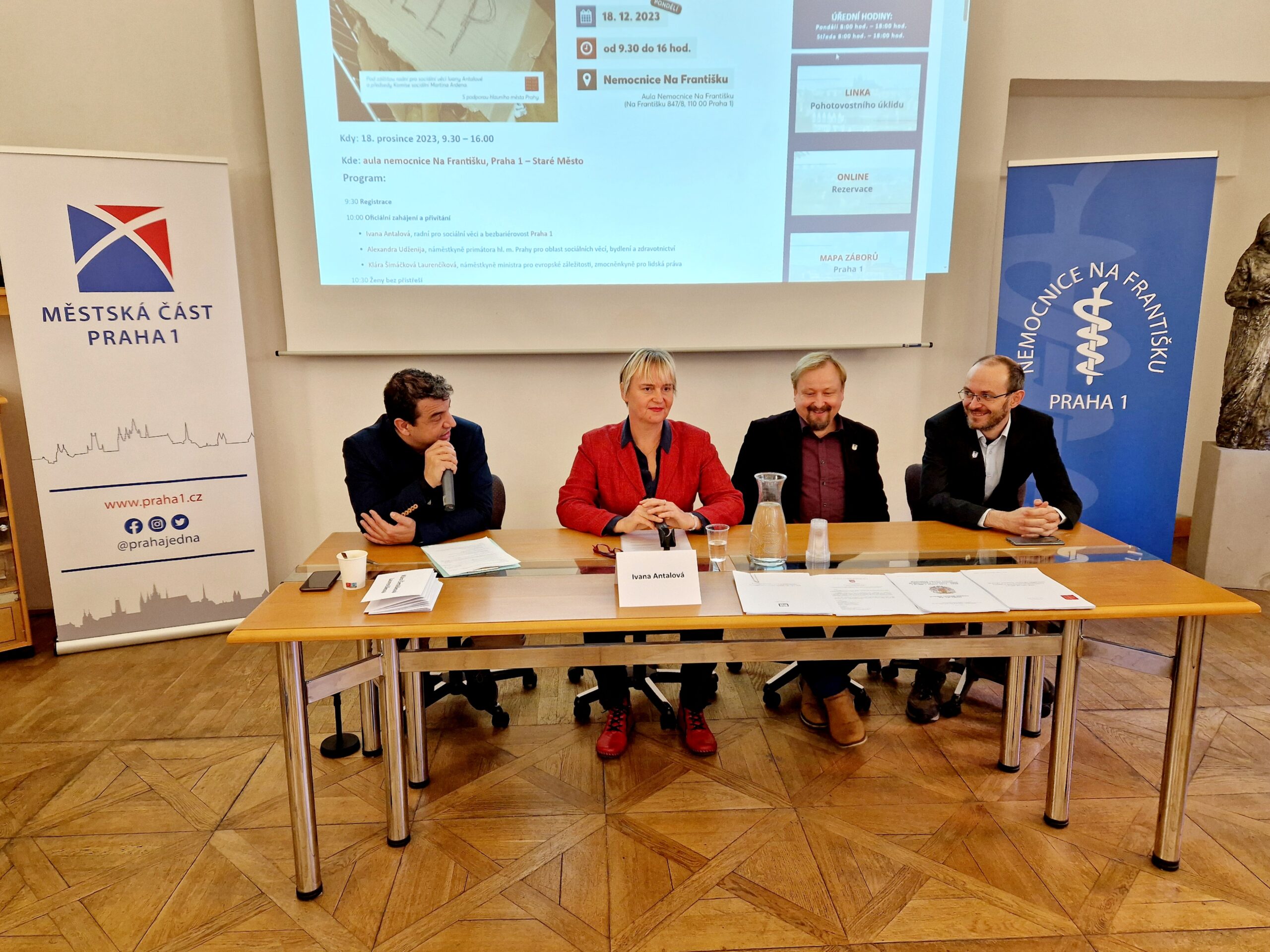 Přítomné v konferenčním sále přivítali zástupci městské části Praha 1, a to radní pro sociální oblast Ivana Antalová, předseda Sociální komise Prahy 1 Martin Arden a asistent předsedy Sociální komise Miroslav Brož.